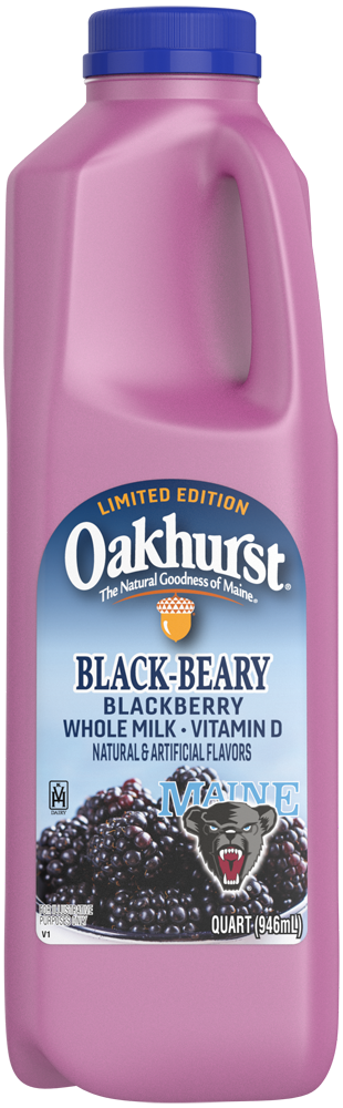 Introducing a flavor as bold as UMaine pride. Oakhurst Black‑Beary flavored whole milk is here for a limited time—smooth, berry‑sweet, and made for Black Bear fans who go all in. Available in quart and pint sizes.