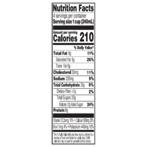 INGREDIENTS MILK, LIQUID SUGAR (SUGAR, WATER), LESS THAN 1% OF COCOA (PROCESSED WITH ALKALI), NONFAT MILK, CORNSTARCH, SALT, CARRAGEENAN, GUAR GUM, NATURAL FLAVORS, VITAMIN D3. CONTAINS: MILK.